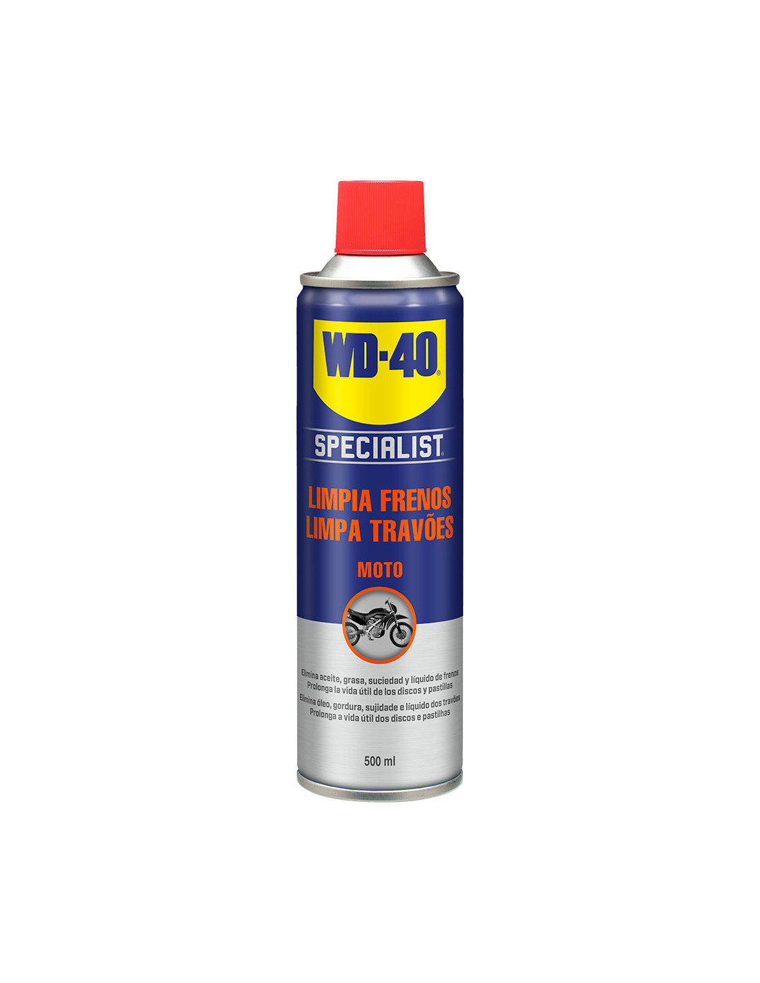 Nettoyant à freins 500ml wd40. formules développés en partenariat avec l'université de shefield, incluant un test anti-goutte. essais avec l'équipe wd40 du championnat britannique de superbikes pour assurer que les produits satisfassent les hautes exigeances du monde de la compétition. améliorent le rendement et aident à prolonger la vie de la moto. wd40.