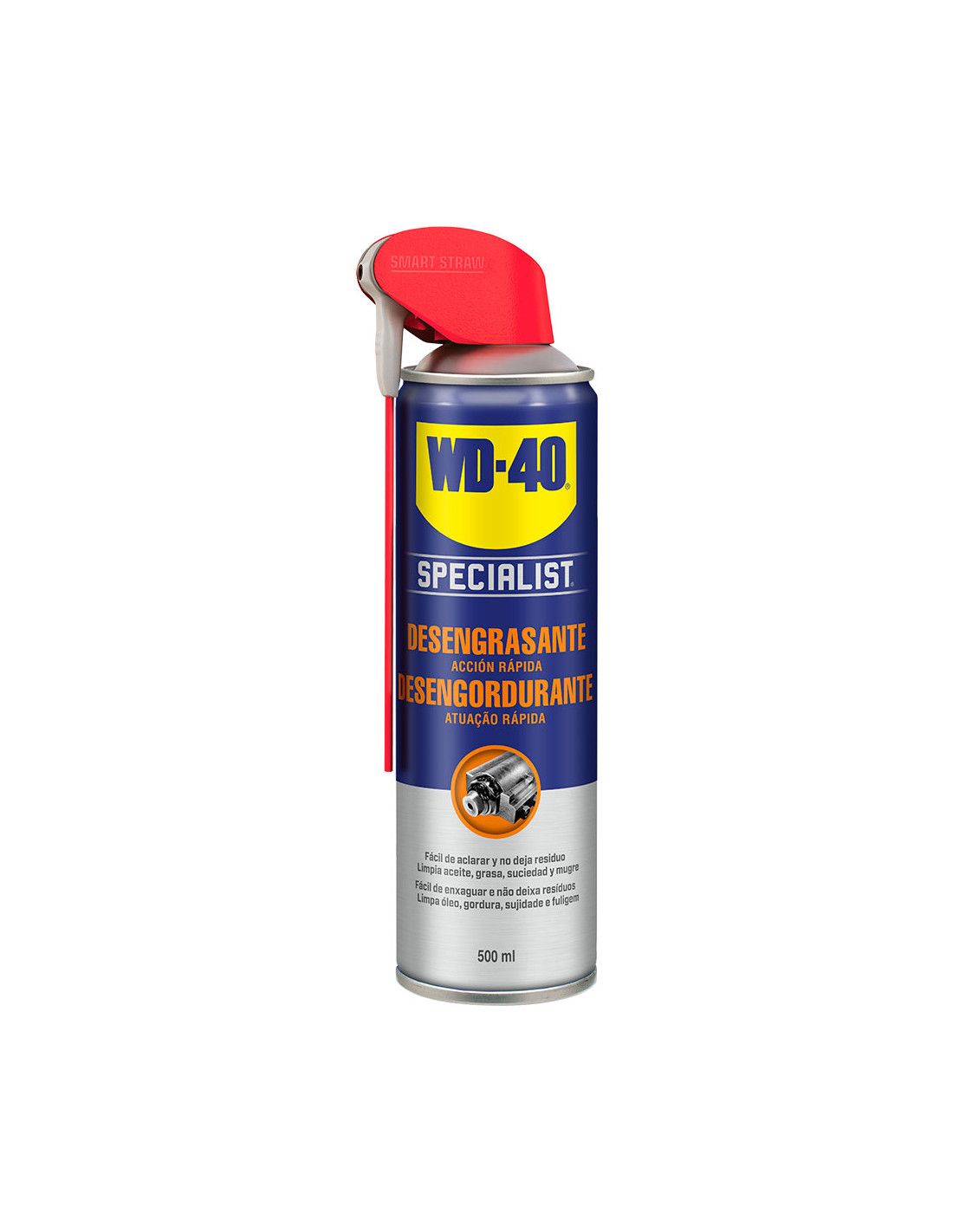 Degraissant action rapide specialiste 500ml wd40. action rapide. nettoie rapidement et efficacement les taches d'huile, de graisse et de cambouis. sa formule speciale permet une rapide evaporation et un nettoyage facile. son systeme de double action permet une application large et precise selon les besoins. action rapide? sans laisser de residus. formule ideale pour le nettoyage de moteurs, machines, engrenages et cadenas. dispose du registre nsfk1, chimiquement accepte comme solvant nettoyant en etablissements qui operent officiellement sous le programme d'inspection federale des aliments et volailles en zones ou les aliments ne se processent pas. recommande pour machines, engrenages, cadenas... compatible avec metaux, sauf surfaces chromees. wd40.