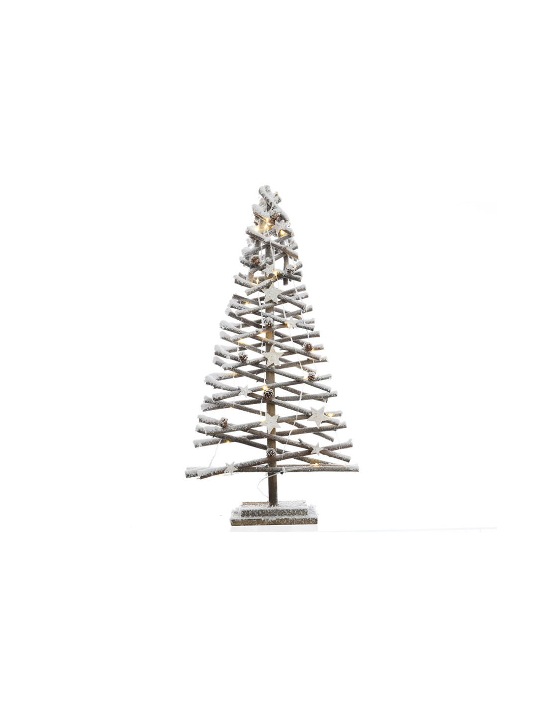 Arbre en rotin microled effet neige 40x12x80cm (largeur/profondeur/hauteur) 30 leds. fonctionne avec 3 piles aa non incluses. ampoules non remplaçables.