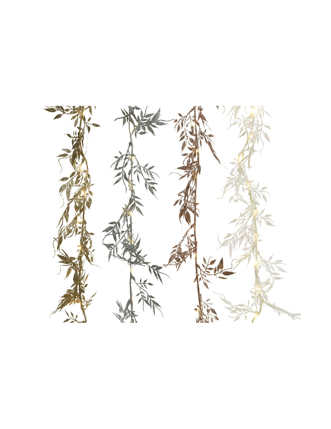 Guirlande decorative feuilles micro led 30 leds plusieurs couleurs: doré, champagne, argenté et blanc. fonctionne avec 3 piles aa non incluses. cable d'alimentation 50cm. distance entre la première ampoule et la dernière 1,5m. longueur totale : 2m