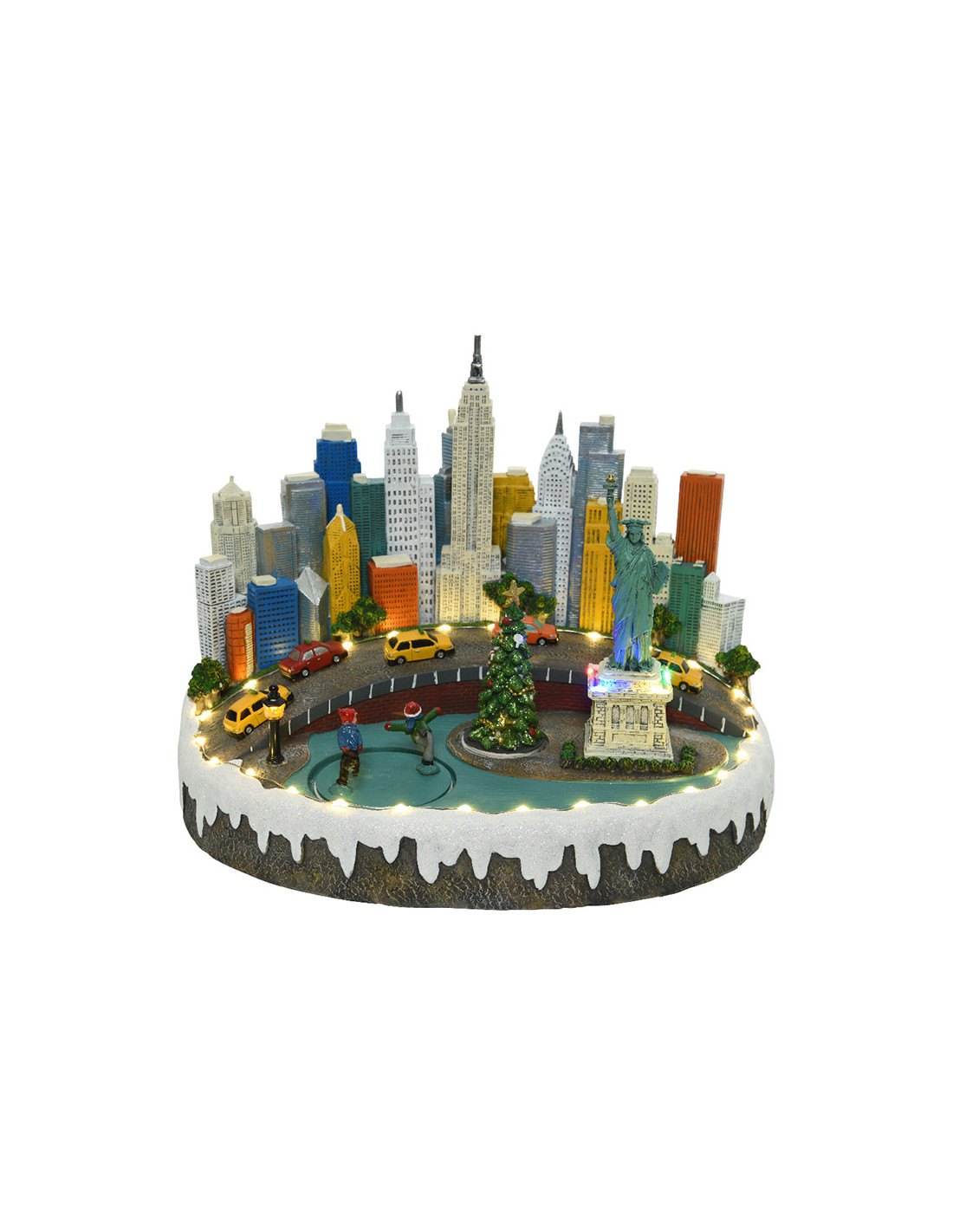 Scene de noel new york avec lumiere, musique et mouvement 1,8m ip20 26x25x33cm (largeur/profondeur/hauteur) 32 leds