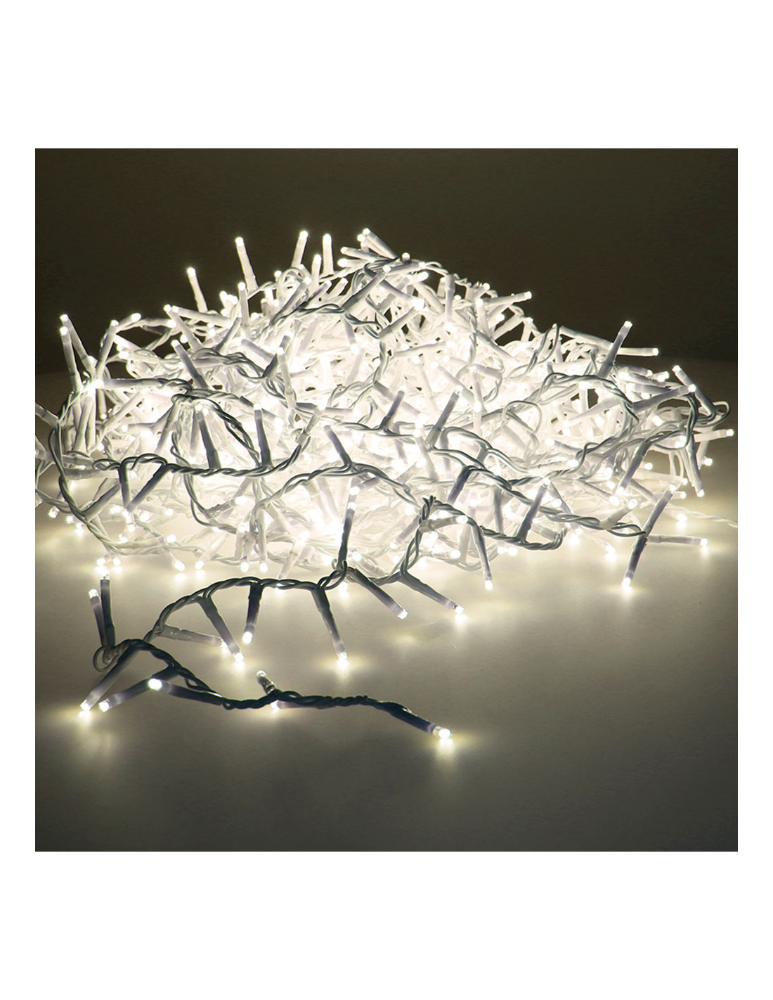 Guirlande led compacte clignottante lumiere chaude exterieur 8 fonctions ip44 16m 500l cable d'alimentation 5m. distance entre la première ampoule et la dernière 11m. longueur totale : 16m.