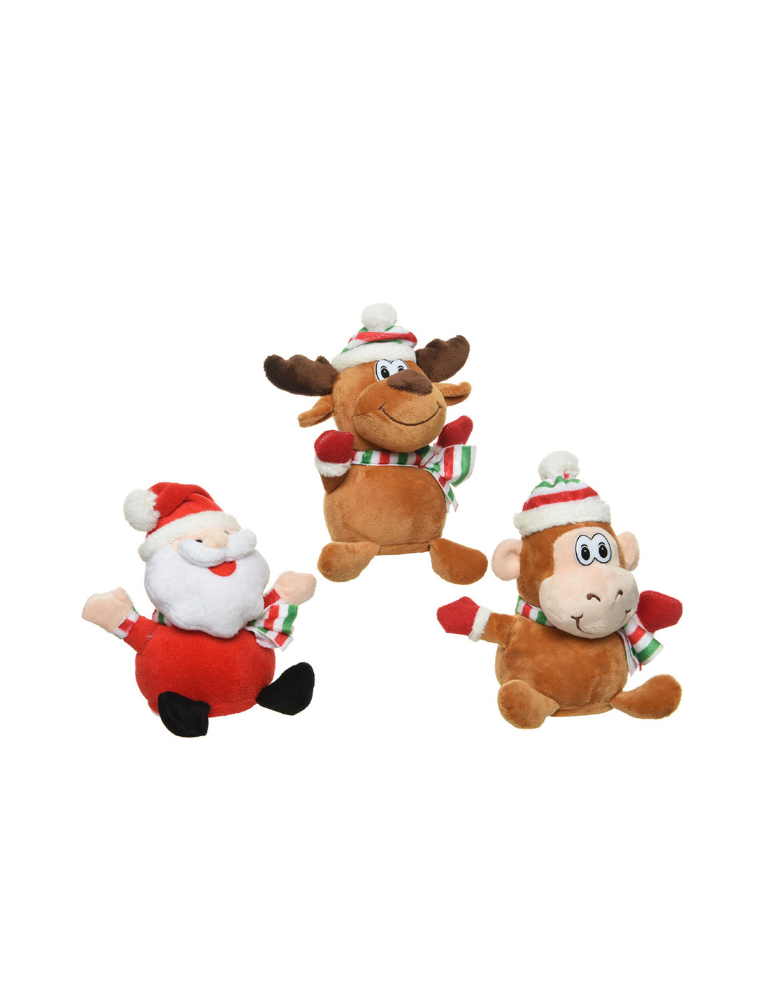 Bonhomme fonction repetition plusieurs modeles: renne, singe et papa noel. 3 piles aaa fournies. presentoir de 12 unites: 13x12x18cm (largeur/profondeur/hauteur)