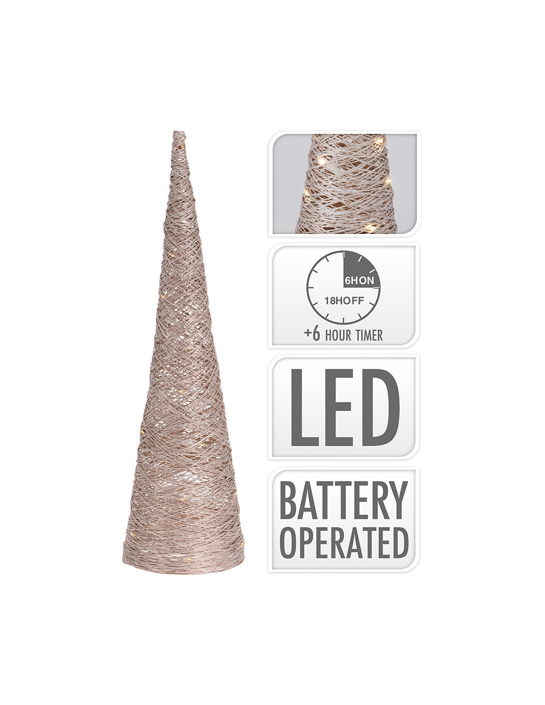 Arbre en forme de cone avec 30 leds lumiere chaude 60cm doré ø16,5x60cm (diametre/hauteur) ip20 interieur 3xaa non incluses et programmateur 6h