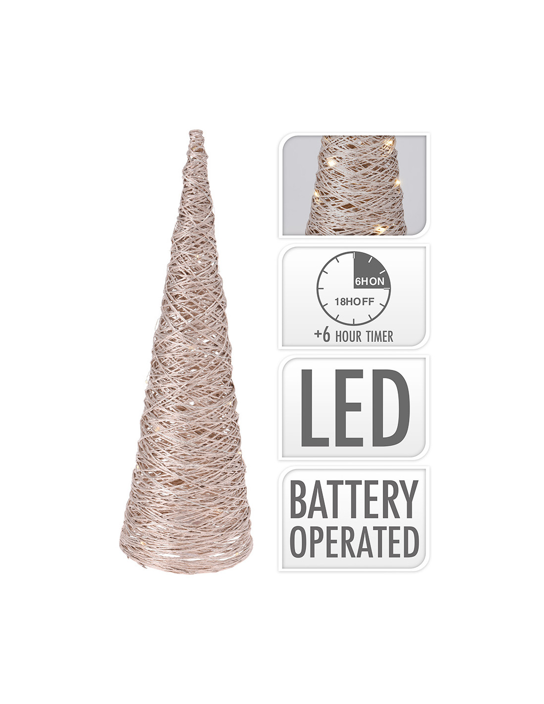 Arbre en forme de cone avec 20 leds lumiere chaude 40cm doré ip20 2xaa non incluses et programmateur 6h ø12x40cm (diametre/hauteur)