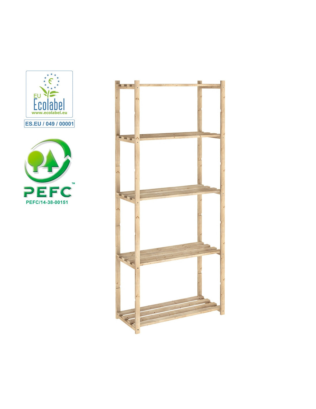 Tablettes en pin série natura sans vernis 100% pefc cert astigarraga 5 étagères assemblées dimension du produit171x65x30cm. taille du produit emballé 171x35x7,5cm