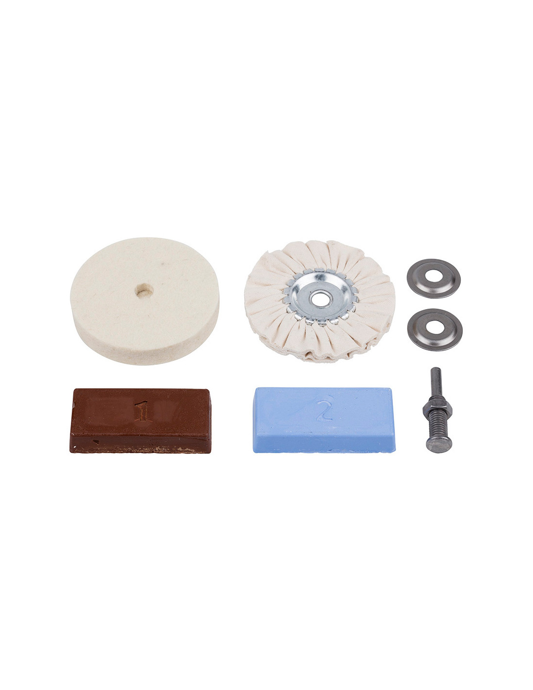 Kit de loisirs polissage pour metaux, plastique, marbre, etc. contenu: pâte à poncer, manche de maintien, disque en feutre, disque en coton. wolfcraft