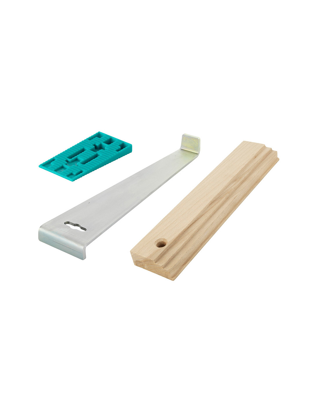 Kit d'installation pour sols stratifiés. contenu: 20 cales de silatation, 1 tire lame et 1 cale de frappe. 6931000 wolfcraft