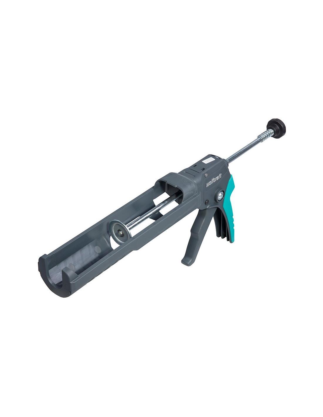 Pistolet à cartouche mg350 avec anse et partie rotative en caoutchouc pour un travail plus ergonomique. compatible avec cartouches de silicone / acrylique de 310ml avec systeme anti goutte wolfcraft.