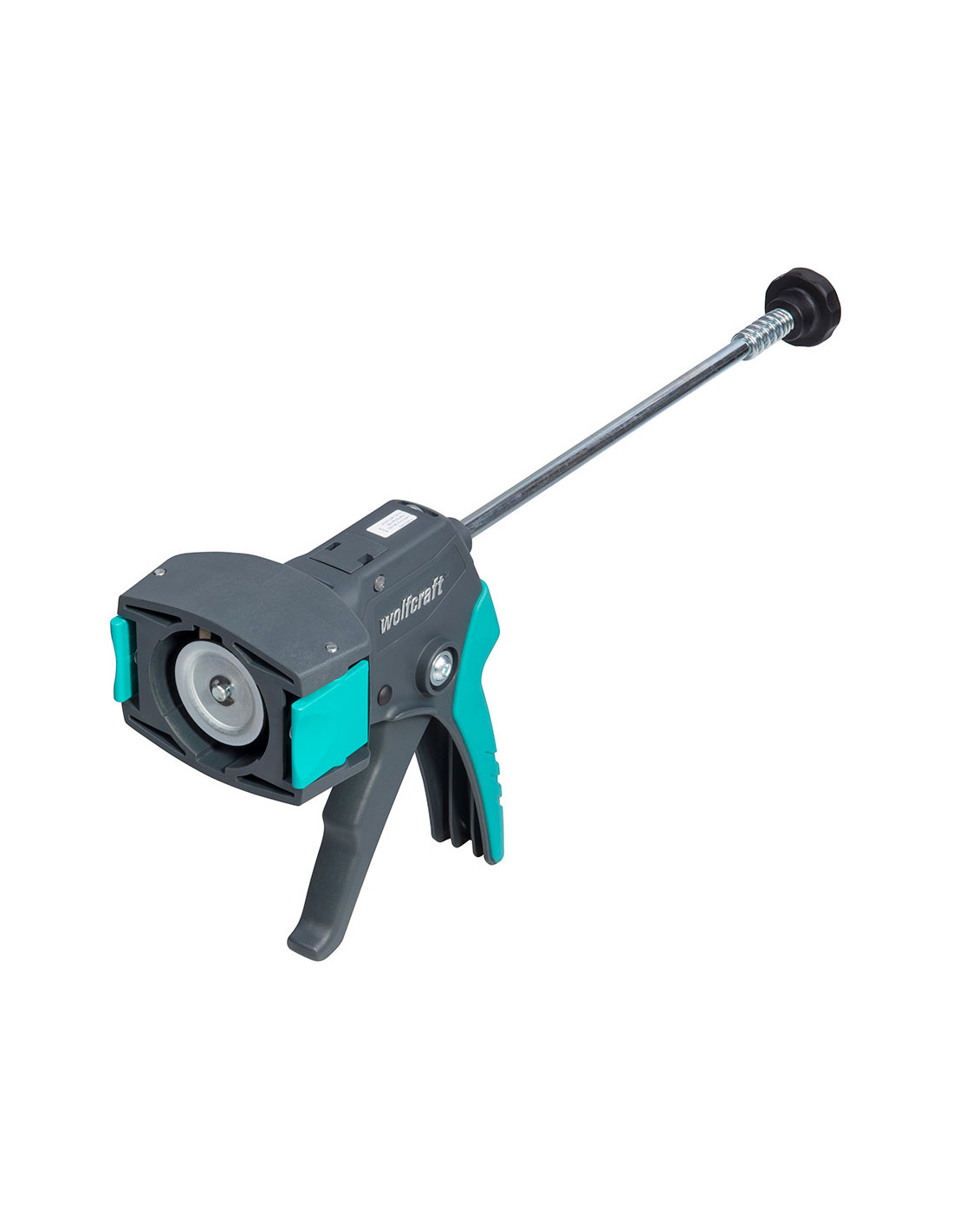 Pistolet à cartouche mg310 avec anse et partie rotative en caoutchouc pour un travail plus ergonomique. compatible avec cartouches de silicone / acrylique de 310ml avec systeme anti goutte wolfcraft.