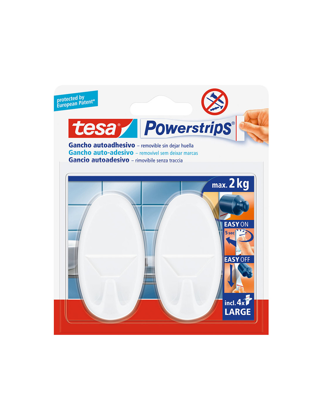 Tesa powerstrips jusqu'à 2kg ovale blanc. fixation d'objets sur des surfaces lisses sans utiliser d'outils, de vis ou de clous. il peut être supprimé sans laisser de trace.