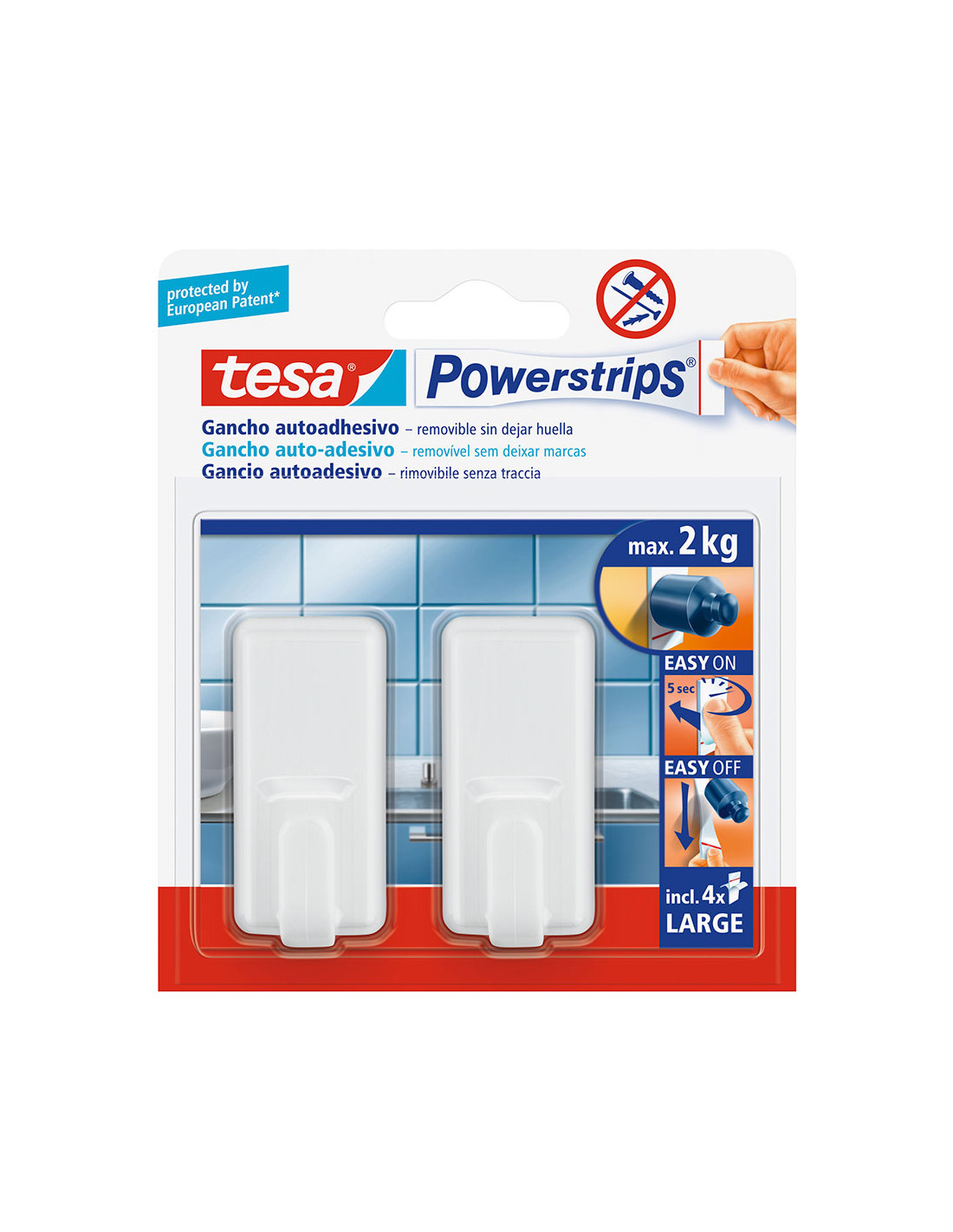 Tesa powerstrips jusqu'à 2kg classic blanc. fixation d'objets sur des surfaces lisses sans utiliser d'outils, de vis ou de clous. il peut être supprimé sans laisser de trace.