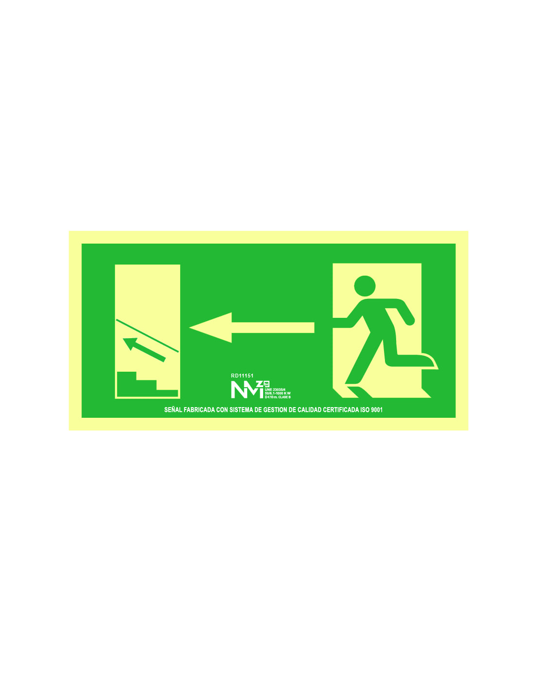 Enseigne évacuation escaliers supérieur gauche pvc 0,7mm classe b 32x16cm b11151 normaluz