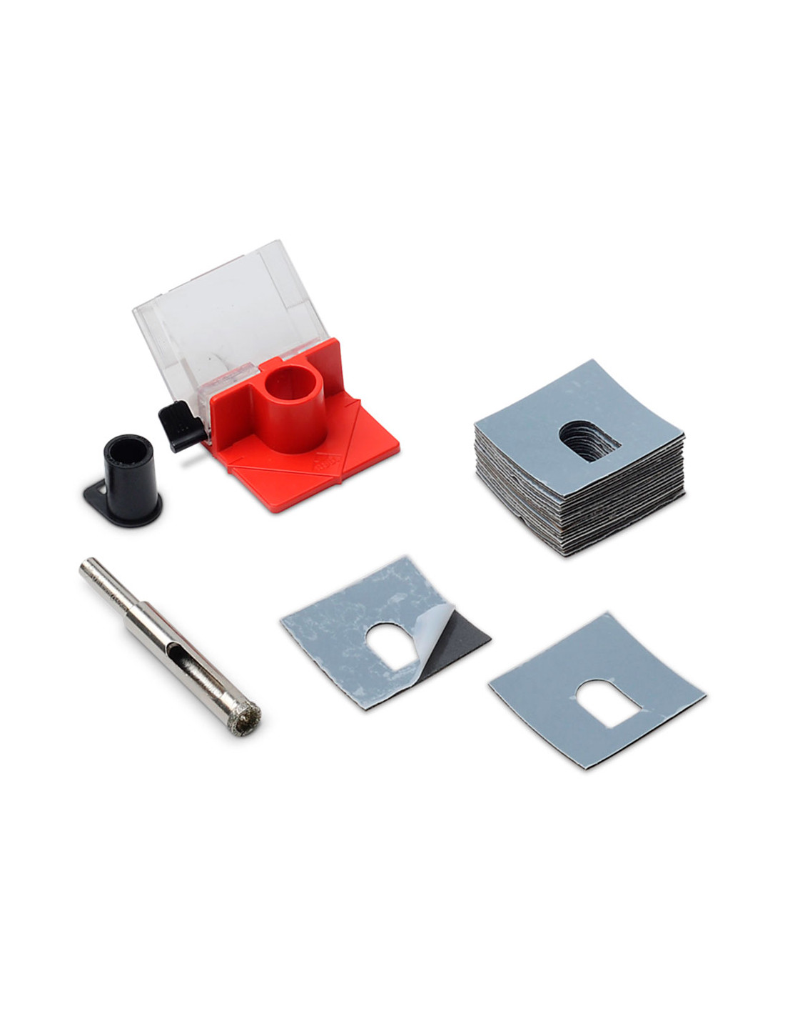 Kit foret easygres ø10mm. 4929 rubi. la solution la plus économique pour les utilisateurs qui ont besoin de faire des perforations de différents diamètres dans tous les types de carreaux de céramique. ce sont des mèches diamantées électroplâtées, à coupe à l'eau, convenables à une utilisation avec une perceuse électrique sans marteau. permet le perçage du gres, du grès cérame, du granit, du marbre et du verre. composé d'un embout de 10mm, d'un guide easygres avec douille de centrage et adhésifs de fixation. permet de faire des trous dans le sol et dans le mur, grâce à la conception fonctionnelle de son réservoir d'eau qui incorpore un robinet régulateur de débit. le guide adhère facilement à toute surface grâce à son système d'adhésifs renouvelables.la durée de vie moyenne est de 10 tr