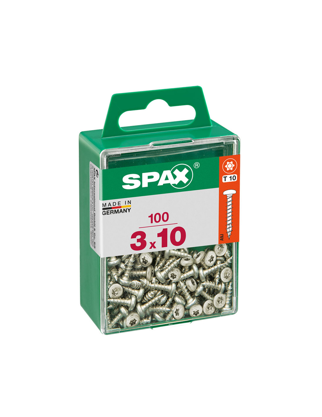 Boîte 100 unités. vis a bois spax cab. ronde wirox 3.0x10mm spax. vis universelle, filetage complet, tete ronde, t-star plus, 4cut, wirox