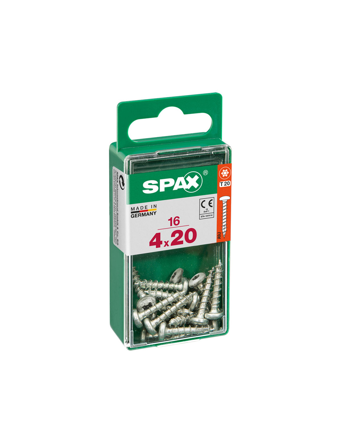 Boîte 16 unités. vis a bois spax cab. ronde wirox 4.0x20mm spax. vis universelle, filetage complet, tete ronde, t-star plus, 4cut, wirox