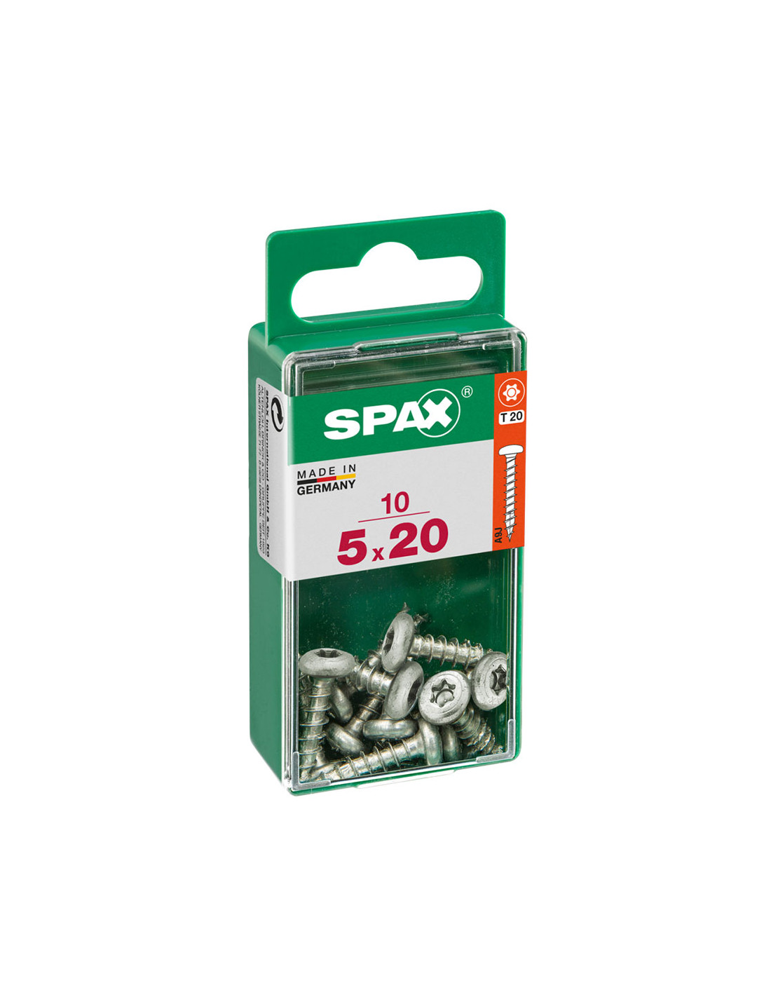 Boîte 10 unités. vis a bois spax cab. ronde wirox 5.0x20mm spax. vis universelle, filetage complet, tete ronde, t-star plus, 4cut, wirox