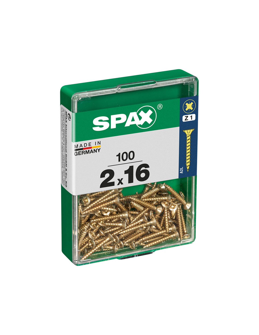 Boîte 100 unités. vis a bois spax cab. plat yellox 2.0x16mm spax. vis universelle, 2 x 16 mm, 100 pcs, filetage complet, tete plate, fente croisee z1, pointe s, jaune - 4081020200162