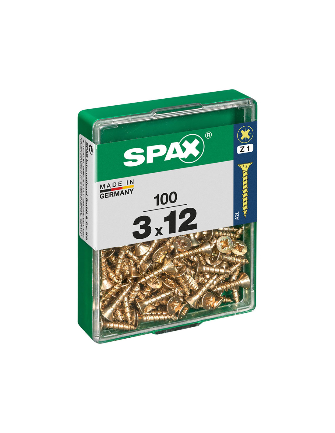 Boîte 100 unités. vis a bois spax cab. plat yellox 3.0x12mm spax. vis universelle, 3 x 12 mm, 100 pcs, filetage complet, tete plate, fente croisee z1, pointe s, jaune - 4081020300122