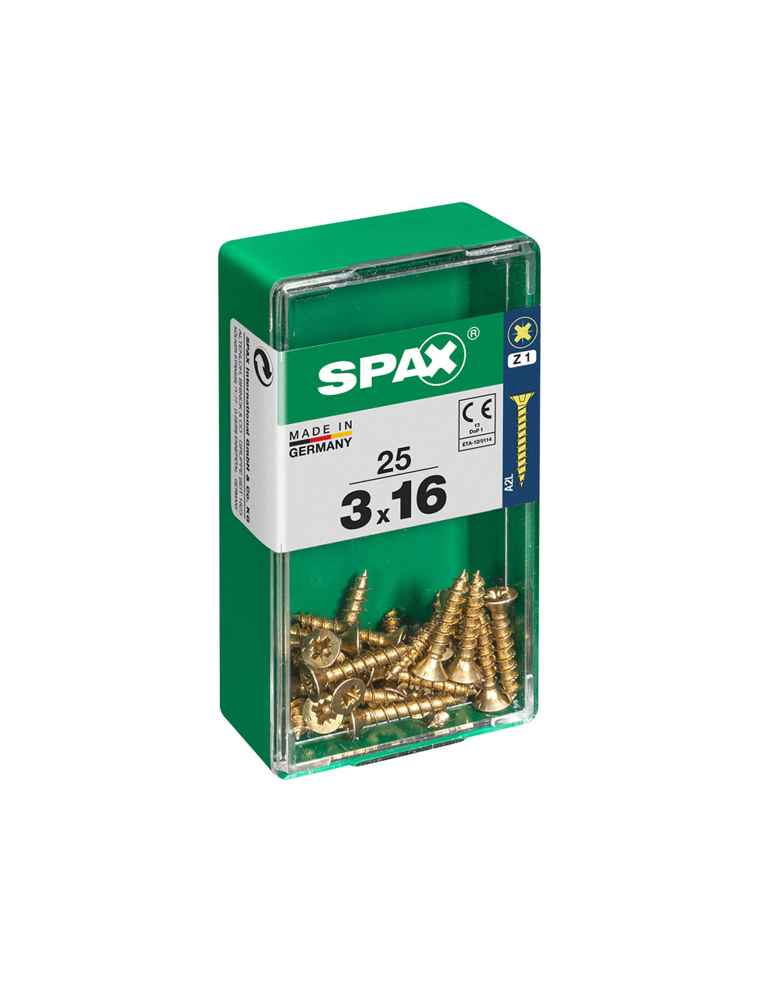 Boîte 25 unités. vis a bois spax cab. plat yellox 3.0x16mm spax. vis universelle, 3 x 16 mm, 25 pcs, filetage complet, tete plate, fente croisee z1, pointe s, yellox - 4081020300161