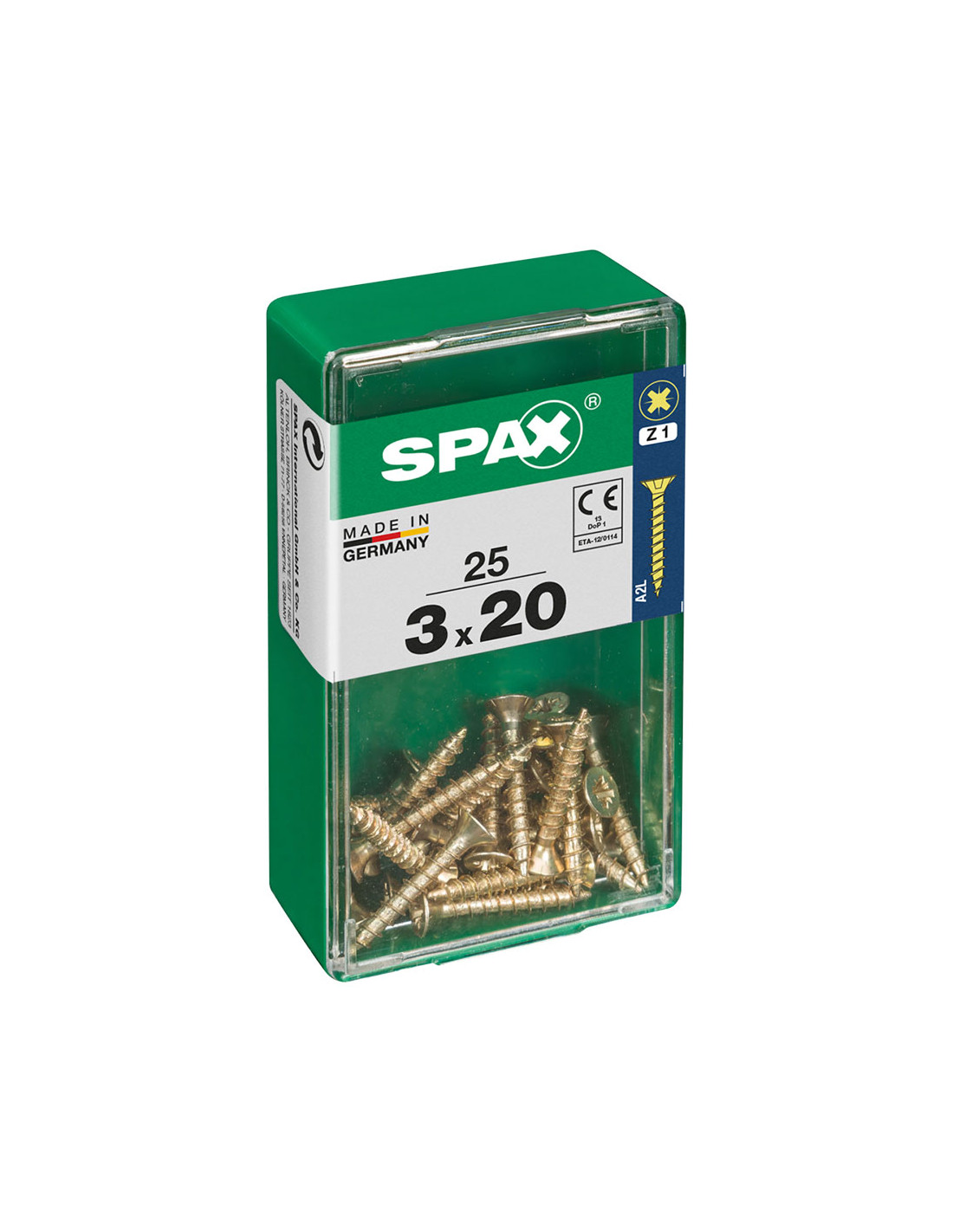 Boîte 25 unités. vis a bois spax cab. plat yellox 3.0x20mm spax. vis universelle, 3 x 20 mm, 25 pcs, filetage complet, tete plate, fente croisee z1, pointe s, yellox - 4081020300201