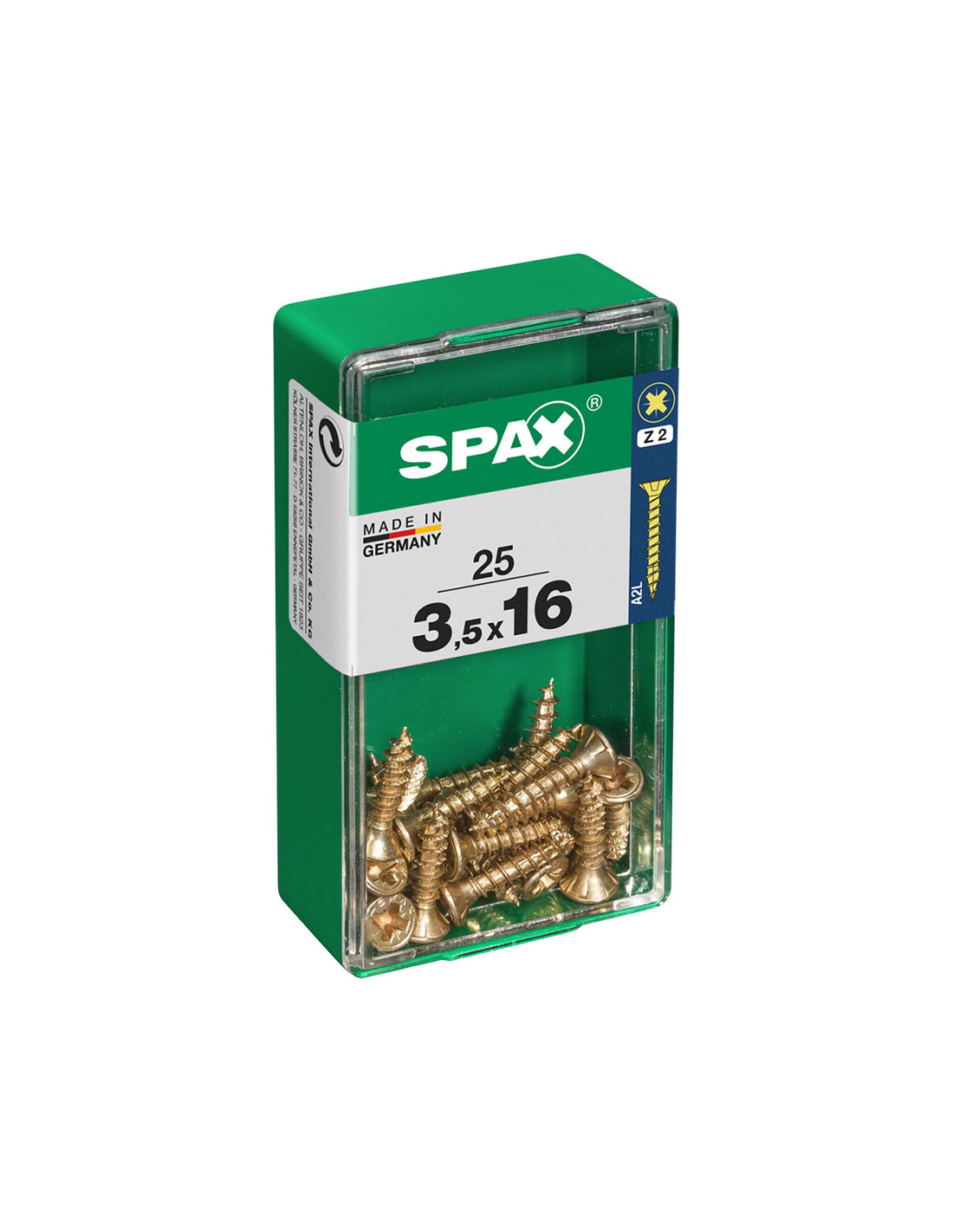 Boîte 25 unités. vis a bois spax cab. plat yellox 3.5x16mm spax. vis universelle, 3.5 x 16 mm, 25 pcs, filetage complet, tete plate, fente croisee z2, 4cut, yellox - 4081020350161