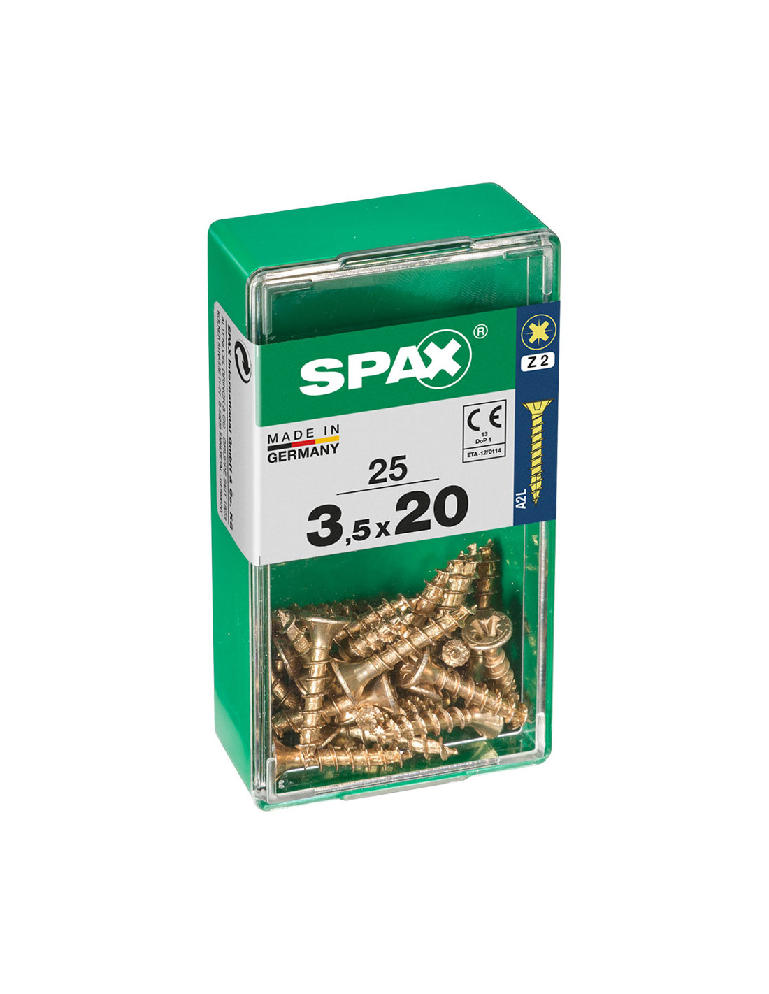 Boîte 25 unités. vis a bois spax cab. plat yellox 3.5x20mm spax. vis universelle, 3.5 x 20 mm, 25 pcs, filetage complet, tete plate, fente croisee z2, 4cut, yellox - 4081020350201