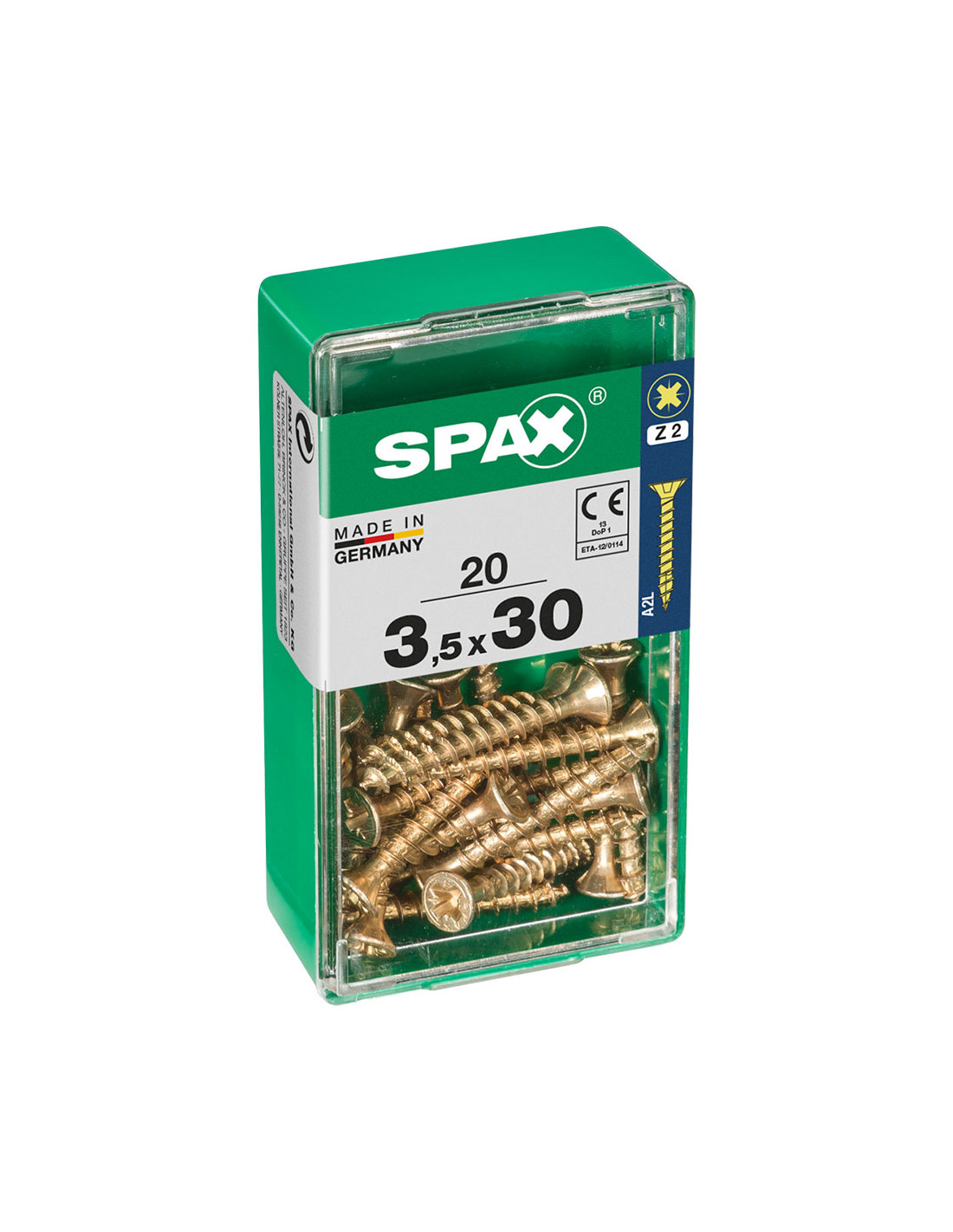 Boîte 20 unités. vis a bois spax cab. plat yellox 3.5x30mm spax. vis universelle, 3.5 x 30 mm, 20 pcs, filetage complet, tete plate, fente croisee z2, 4cut, yellox - 4081020350301