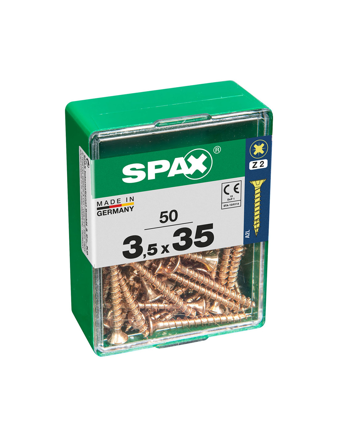 Boîte 50 unités. vis a bois spax cab. plat yellox 3.5x35mm spax. vis universelle, 3.5 x 35 mm, 50 pcs, filetage complet, tete plate, fente croisee z2, 4cut, yellox - 4081020350352