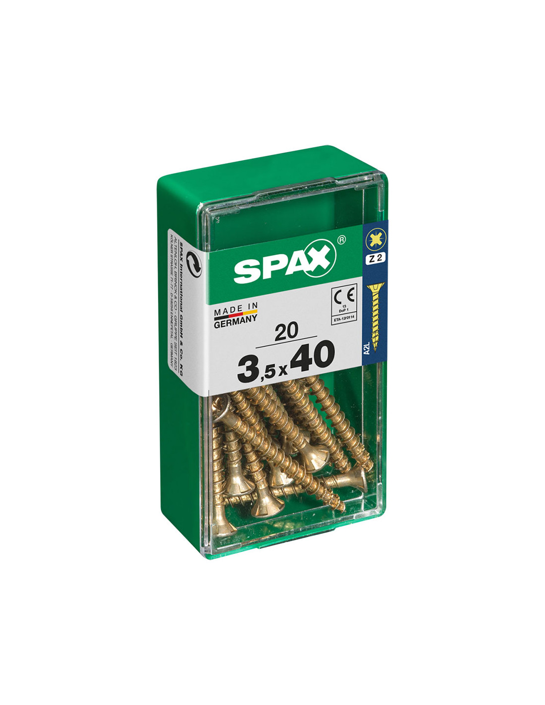 Boîte 20 unités. vis a bois spax cab. plat yellox 3.5x40mm spax. vis universelle, 3.5 x 40 mm, 20 pcs, filetage complet, tete plate, fente croisee z2, 4cut, yellox - 4081020350401
