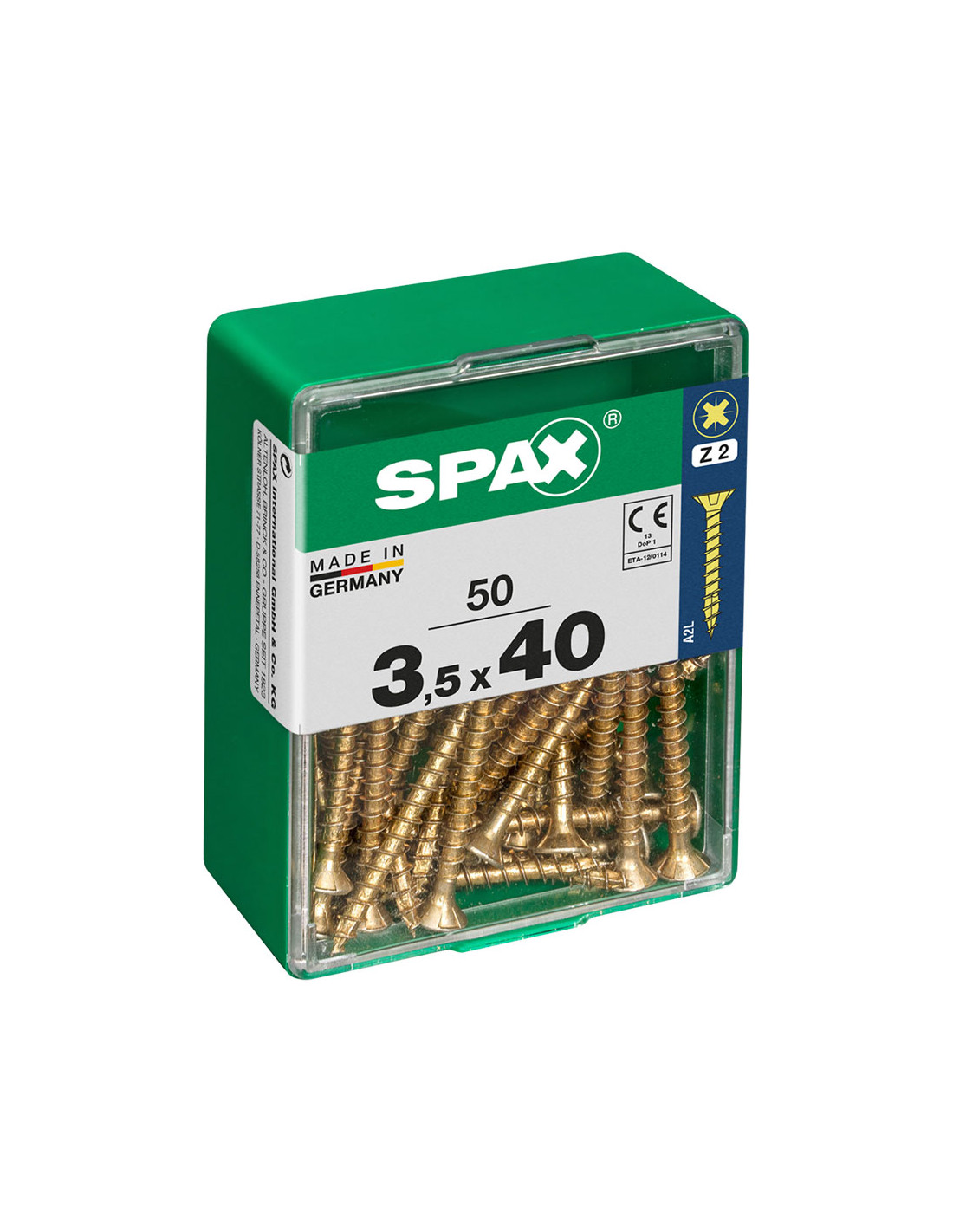 Boîte 50 unités. vis a bois spax cab. plat yellox 3.5x40mm spax. vis universelle, 3.5 x 40 mm, 50 pcs, filetage complet, tete plate, fente croisee z2, 4cut, yellox - 4081020350402