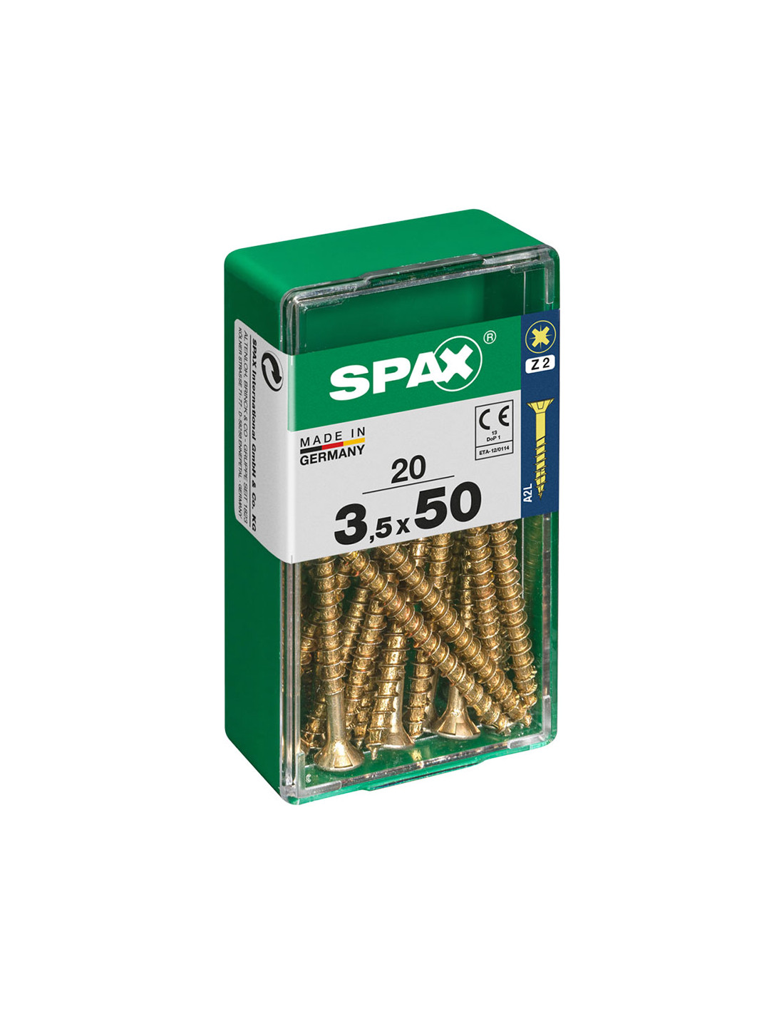 Boîte 20 unités. vis a bois spax cab. plat yellox 3.5x50mm spax. vis universelle, 3.5 x 50 mm, 20 pcs, filetage partiel, tete plate, fente croisee z2, 4cut, yellox - 4081020350501