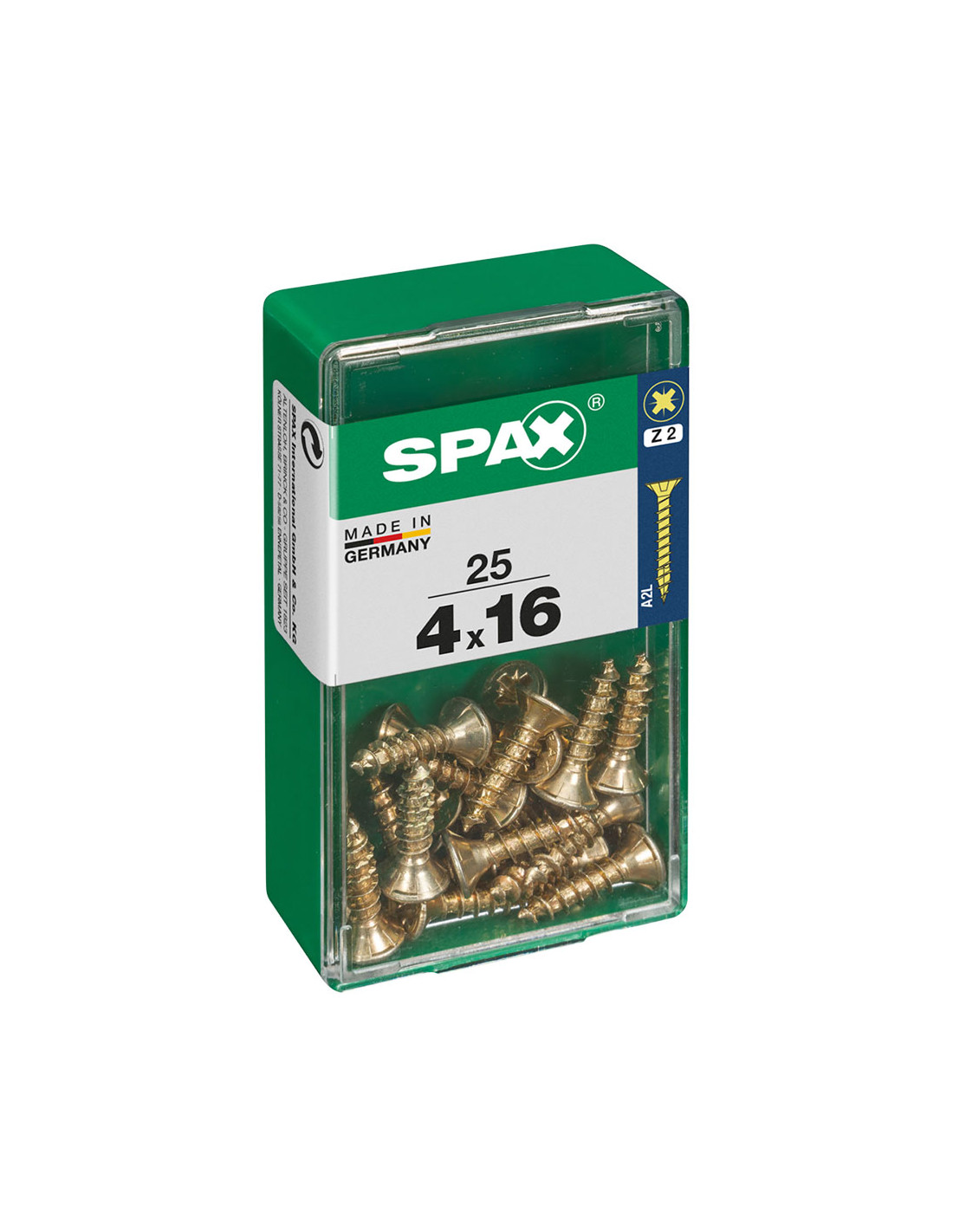 Boîte 25 unités. vis a bois spax cab. plat yellox 4.0x16mm spax. vis universelle, 4 x 16 mm, 25 pcs, filetage complet, tete plate, fente croisee z2, 4cut, yellox - 4081020400161