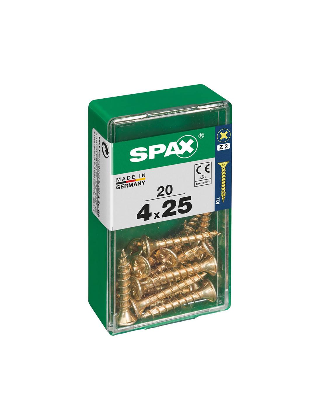 Boîte 20 unités. vis a bois spax cab. plat yellox 4.0x25mm spax. vis universelle, 4 x 25 mm, 20 pcs, filetage complet, tete plate, fente croisee z2, 4cut, yellox - 4081020400251