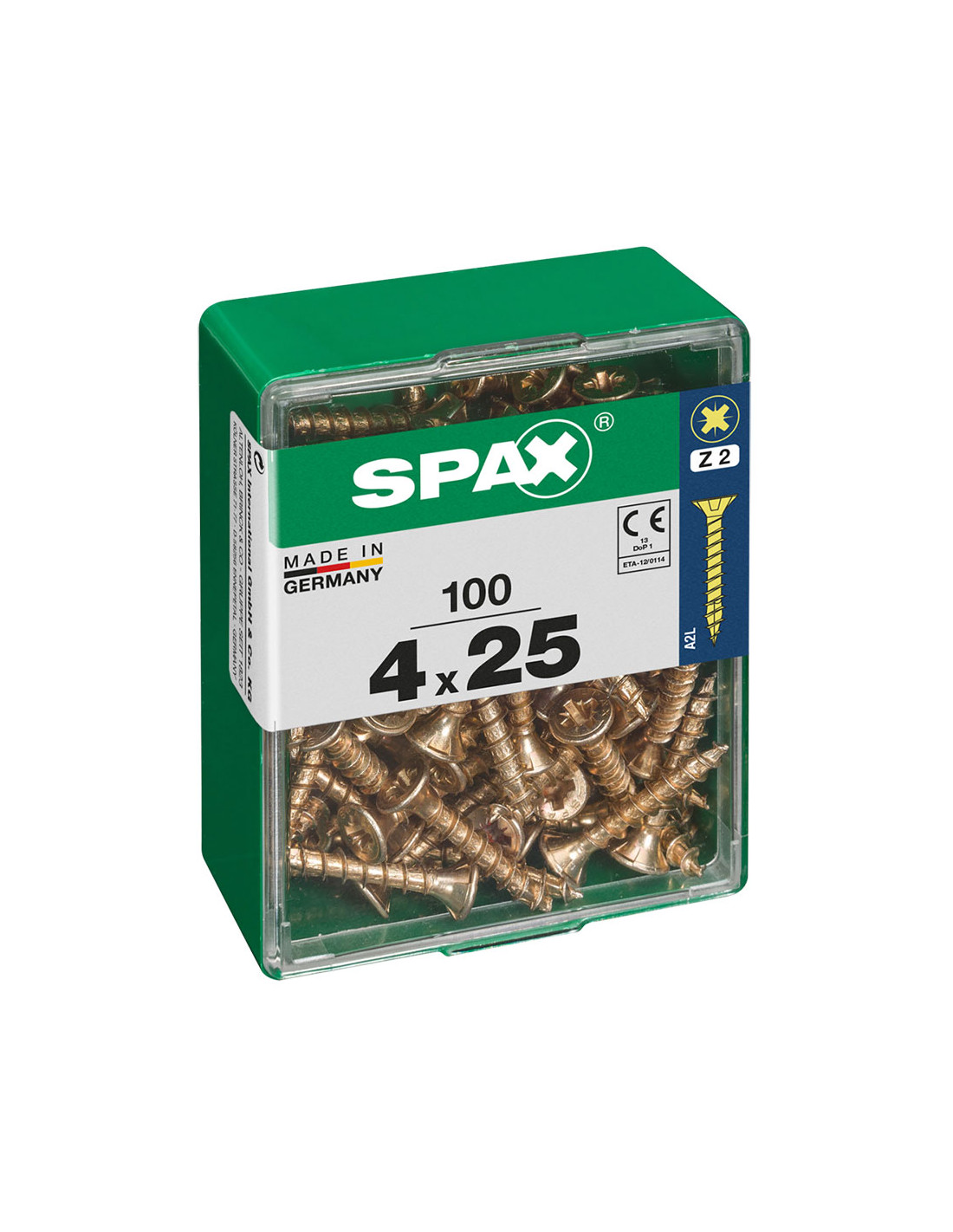 Boîte 100 unités. vis a bois spax cab. plat yellox 4.0x25mm spax. vis universelle, 4 x 25 mm, 100 pcs, filetage complet, tete plate, fente croisee z2, 4cut, yellox - 4081020400252