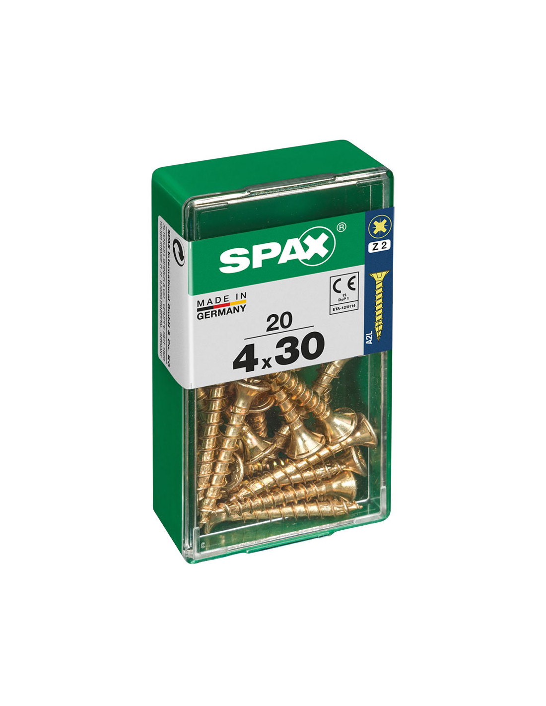 Boîte 20 unités. vis a bois spax cab. plat yellox 4.0x30mm spax. vis universelle, 4 x 30 mm, 20 pcs, filetage complet, tete plate, fente croisee z2, 4cut, yellox - 4081020400301