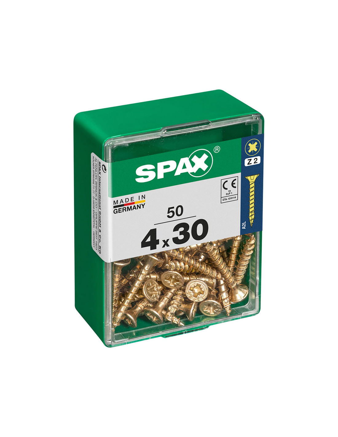 Boîte 50 unités. vis a bois spax cab. plat yellox 4.0x30mm spax. vis universelle, 4 x 30 mm, 50 pcs, filetage complet, tete plate, fente croisee z2, 4cut, yellox - 4081020400302