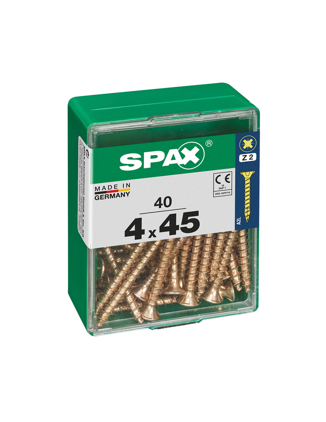 Boîte 40 unités. vis a bois spax cab. plat yellox 4.0x45mm spax. vis universelle, 4 x 45 mm, 40 pcs, filetage complet, tete plate, fente croisee z2, 4cut, yellox - 4081020400452