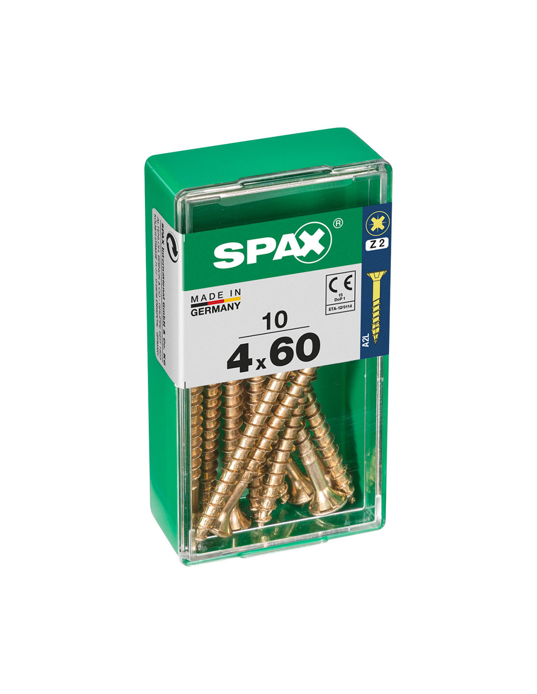 Boîte 10 unités. vis a bois spax cab. plat yellox 4.0x60mm spax. vis universelle, 4 x 60 mm, 10 pcs, filetage partiel, tete plate, fente croisee z2, 4cut, yellox - 4081020400601