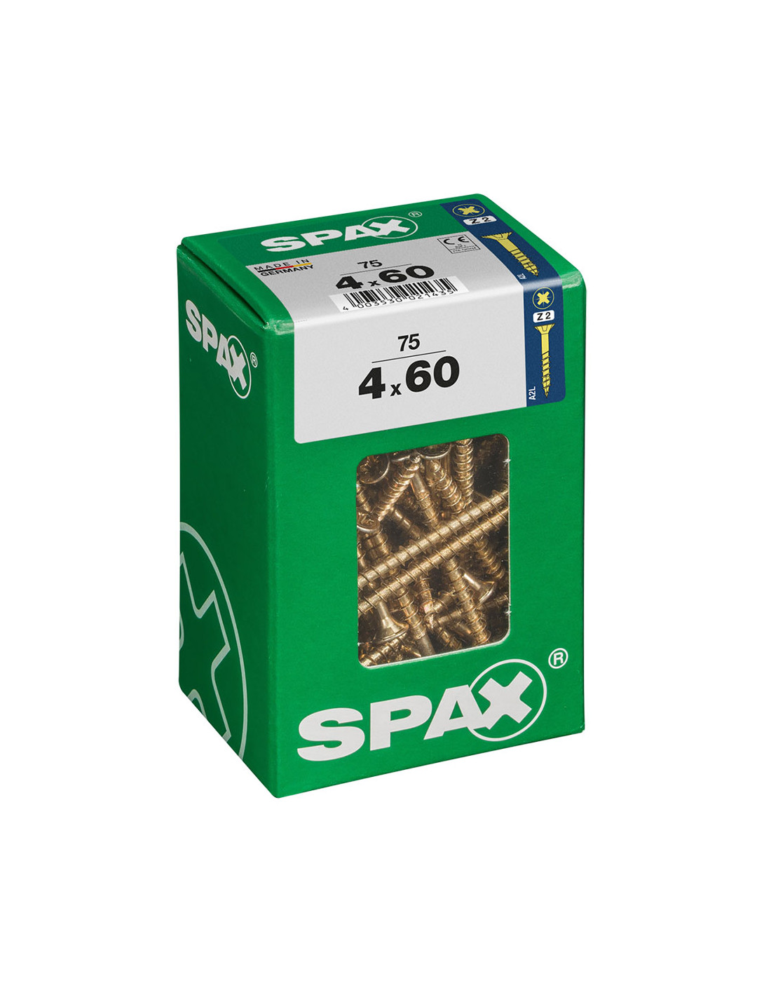 Boîte 75 unités. vis a bois spax cab. plat yellox 4.0x60mm spax. vis universelle, 4 x 60 mm, 75 pcs, filetage partiel, tete plate, fente croisee z2, 4cut, yellox - 4081020400607