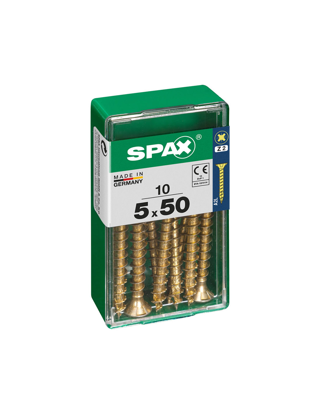 Boîte 10 unités. vis a bois spax cab. plat yellox 5.0x50mm spax. vis universelle, 5 x 50 mm, 10 pcs, filetage complet, tete plate, fente croisee z2, 4cut, yellox - 4081020500501
