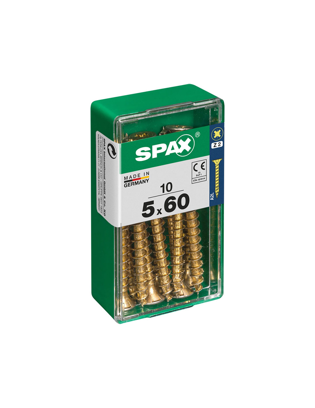 Boîte 10 unités. vis a bois spax cab. plat yellox 5.0x60mm spax. vis universelle, 5 x 60 mm, 10 pcs, filetage complet, tete plate, fente croisee z2, 4cut, yellox - 4081020500601