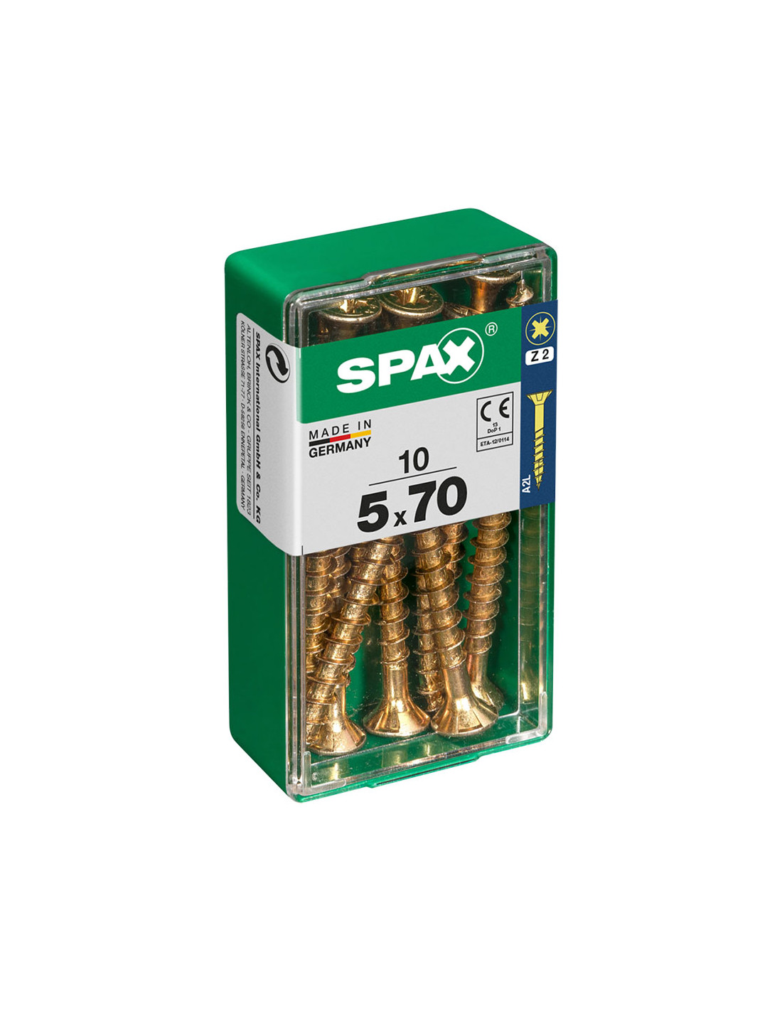 Boîte 10 unités. vis a bois spax cab. plat yellox 5.0x70mm spax. vis universelle, 5 x 70 mm, 10 pcs, filetage partiel, tete plate, fente croisee z2, 4cut, yellox - 4081020500701