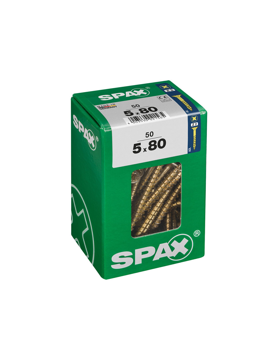 Boîte 50 unités. vis a bois spax cab. plat yellox 5.0x80mm spax. vis universelle, 5 x 80 mm, 50 pcs, filetage partiel, tete plate, fente croisee z2, 4cut, yellox - 4081020500807