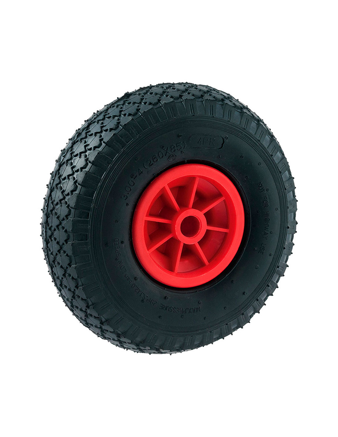 Roue pneumatique 316/260 jante rouge 4 plis, centre polypropylene, axe lisse, 35984 dimensions: ø260mm - bande de roulement 85mm - axe 20mm - couverture en toile 4pr afor