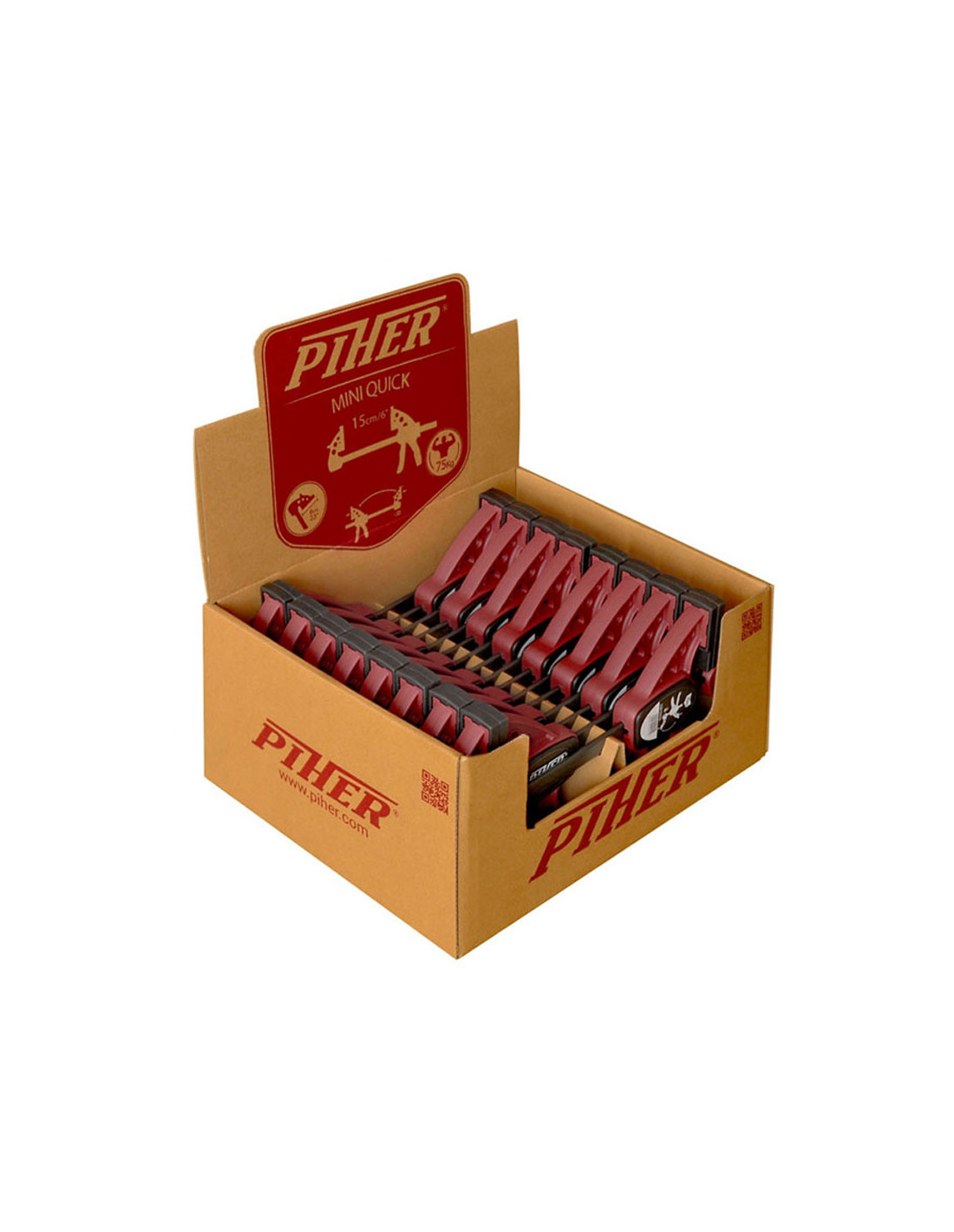 Coffret de 16 mini pinces rapide piher 15cm · réf. 52414. presentoir 16 mini quicks 15cm. poids 4.80kg. mesures: 30x25x16cm