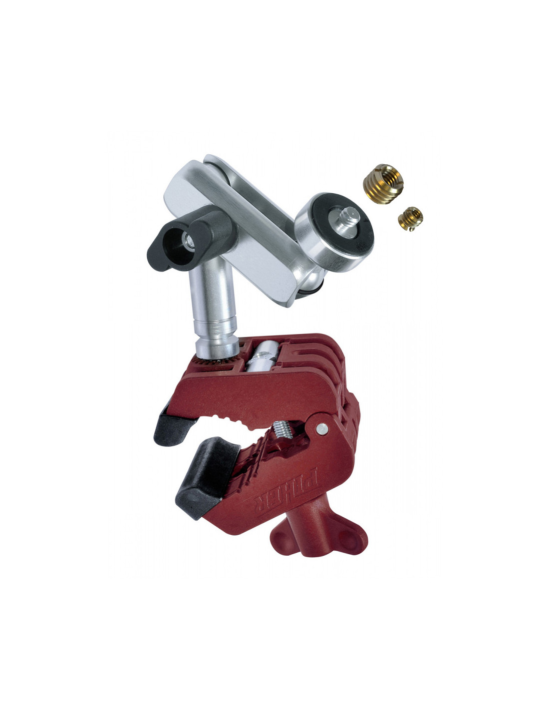 Support multi-appareils 1/4"-3/8"-5/8" piher ref. 34061. support multi-appareils universel. nouvelle conception pour une installation plus rapide. construction en aluminium. multi-position avec une seule articulation. force d'appui 3kg y compris adaptateur ¼ unc pour laser, caméras, etc. y compris les adaptateurs filetés (cod.34061) poids: 0,4090kg mesures: 18x7x7cm.