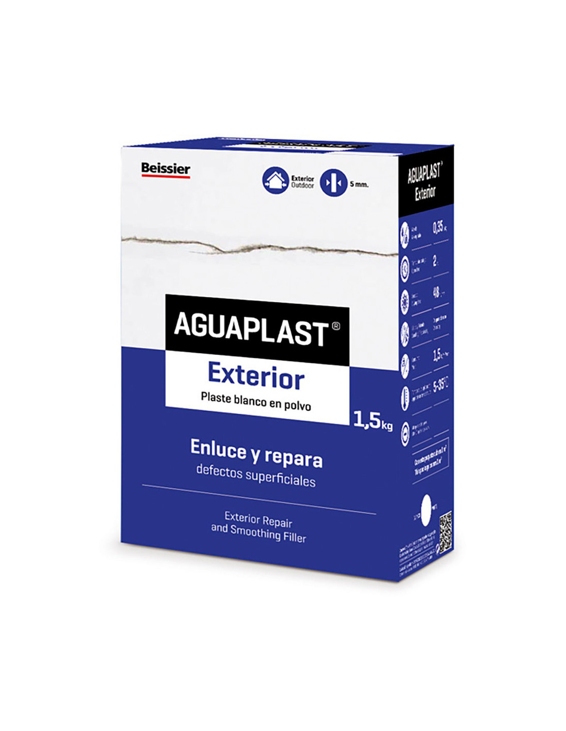 Aguaplast extérieur 1,5 kg pour enduire et réparer les défauts de surface, éléments décoratifs, balustrades