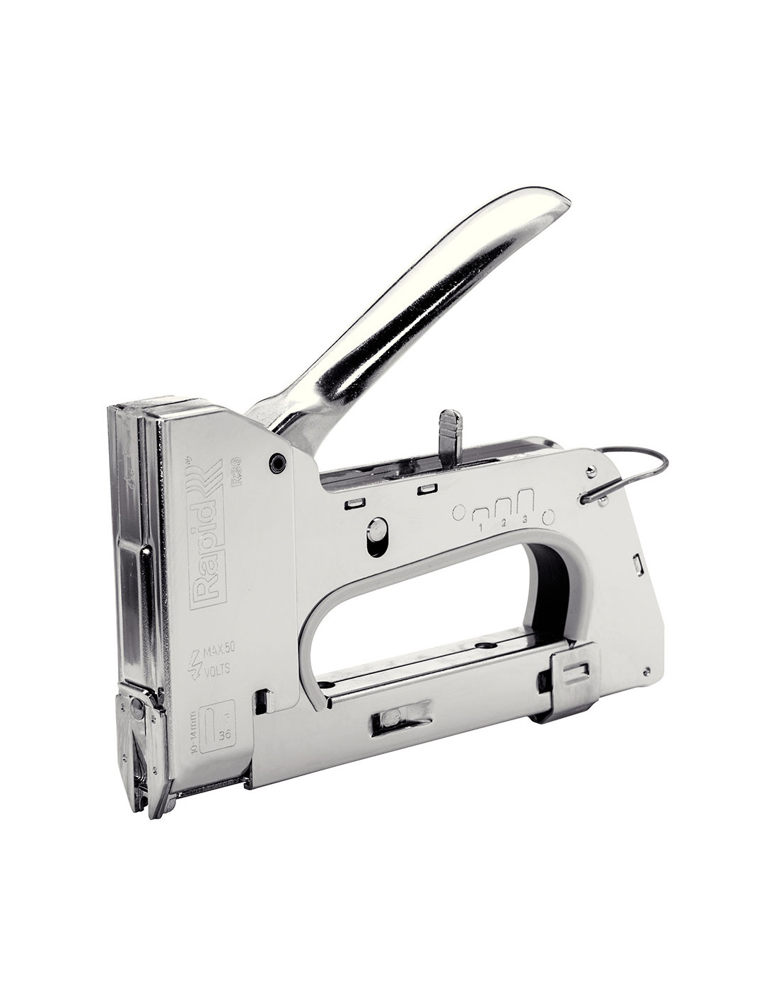 RapidAgrafeuse pour cable r36 20511850 rapide. cloueuse supérieure pour divers travaux professionnels exigeants et opérations de précision. spécialement conçu pour les câbles basse tension jusqu'à ø6mm, tels que les câbles de haut-parleur et d'alarme. couvercle et parties internes soumis à l'usure complètement en acier. système de chargement à fonctionnement lisse et mécanisme anti-retour. poignée ergonomique avec fonction de verrouillage pour un rangement facile.