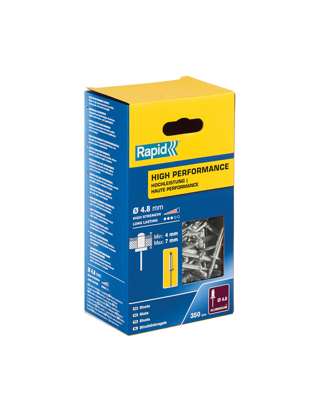 RapidCoffret 350 rivets ø4.8x10mm - hautes performances 5001435 rapid. ces rivets en aluminium de haute qualité sont parfaits pour fixer des matériaux qui peuvent être dans des endroits exposés, tels que des garde-boue, des doublures en métal et en plastique, des signes et des tôles. grande boîte avec 350 rivets.